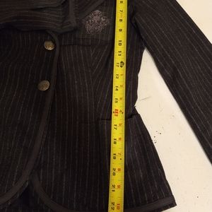 COPY - BB Dakota Blazer Suit Jacket Cropped Lined Gray Pinstripes Logo Size S/34