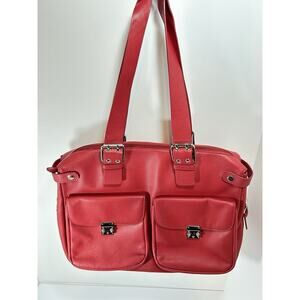 COPY - BUDD LEATHER "Ashley Rose" Red Leather Double Pocket Tote