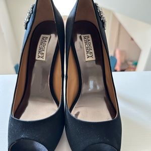 Worn once, gorgeous Badgley Mischka jeweled heels. Perfect for weddings. Original box and storage bag included