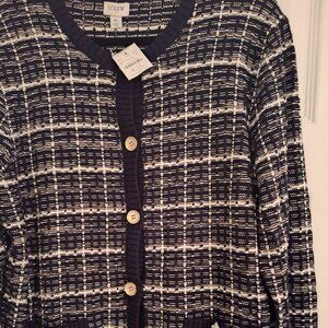 NWT, Never worn, elegant lady cardigan with gold colored buttons. Lady cardigans are a hot trend right now. Pair with a pantsuit or dress. 100 percent cotton...not the typical polyester type!