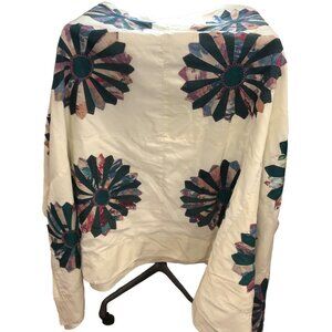 This is a beautiful light weight quilt with floral decor in great colors! The quilt is handmade sewing machine and is 100" by 80". It is in great condition with a couple small stains but pretty great vintage condition