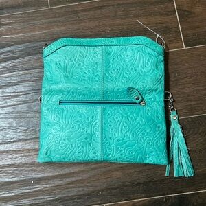 COPY - Bifold embossed Sea Green leather purse one zipper does not have a pull.