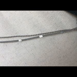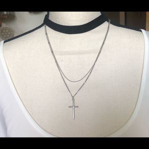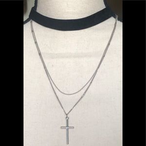 All 3 pieces are connected as one necklace. The black Coker has a velvet texture and is 12 in. plus a 4 in. extender. This extender will also make the chains longer as well if used. Both chains are attached so it’s approximate measures: tiny bb’s is 16 1/2 in. and the chain with a cross pendant is 19 in. and has additional silver tone pieces every 3/4 in. throughout.