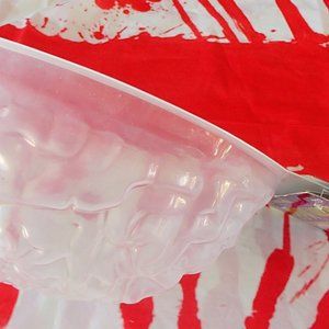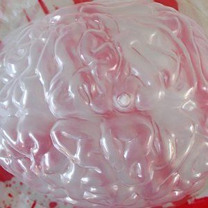 Cool Halloween brain. Use for yummy spooky dessert, props for Zombie, Frankenstein, Mad Scientist... ? You could use it as a hat! It's made of transparent/clear hard plastic.