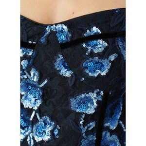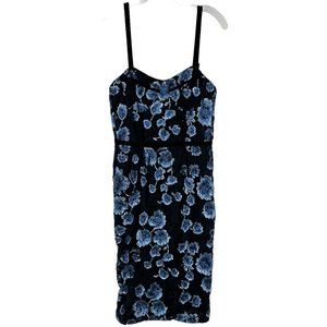 COPY - Bronx and Banco Blue & Black Floral Sequin Camille Pencil Dress AS-IS Si…