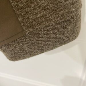Mostly polyester, 6% spandex, 3 zipperd pockets in front, two insides pockets, stand up collar,