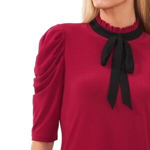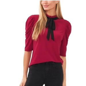 COPY - CECE TIE NECK PUFF SLEEVE KNIT TOP