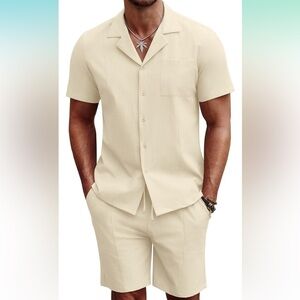 COPY - COOFANDY Men's 2 Piece Short Sleeve Button Down Shirt & Short Set!! NEW!…
