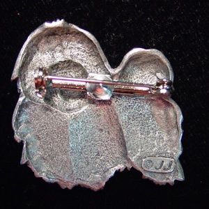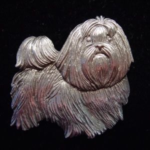 NWOT silver pewter JONETTE JEWELRY Shih Tzu DOG 'Never a Bad Hair Day' pin. Pin measures 1 3/8" wide x 1 1/2" high.