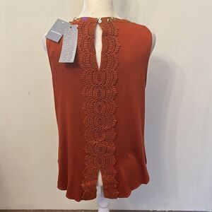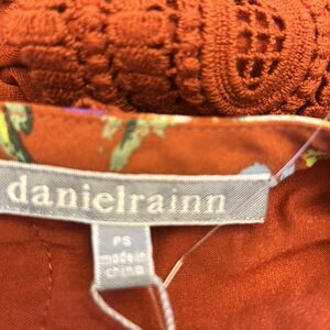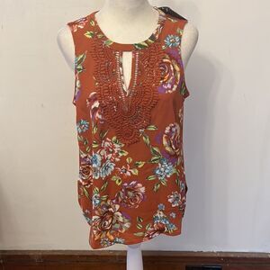 COPY - COPY - Daniel Rainn burnt orange floral mixed media sleeveless blouse Si…