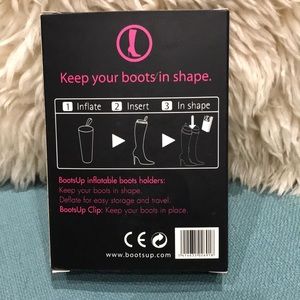 Boots Up! Inflatable boot support help you keep your boots in shape and easy to store and travel with. Each box/package is new, never opened and comes with two inflatable boot holders + boot clip. I have 4 boxes.