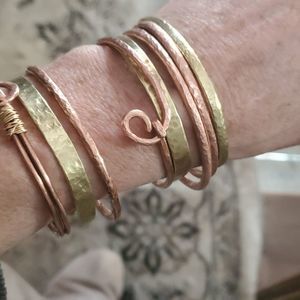 3 for 45 100% pure Healing Copper or Brass bangles/cuffs for stacking, personalizing, expressing your own special individuality. 100% hand forged by me 4 u. 100% one of a kind. Guaranteed. You be YOU , you're the only one who can. Amen?
