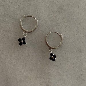 COPY - COPY - Sterling Silver Black Flower Crystal Huggie Hoop Earrings