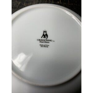 This beautiful Crown Ming fine china bowl is a true treasure for any collector. Its elegant and timeless design features a delicate lace pattern and an etched decorative motif. The round shape of the bowl measures 7.5 inches in diameter, making it perfect for serving salads or soups. The white color with silver accents and the Royal Palm pattern give it a vintage yet sophisticated look.