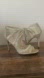 Sheer mesh insets and geo cutouts define these zip-back satin booties styled with gold-tipped ties and an open toe.