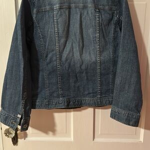 Chicos Platinum Denim Jean Women's Jacket Blue Stretch Size 0; 98% cotton 2% Spandex; previously owned; fast shipping; smoke free home