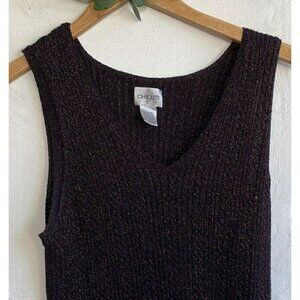 COPY - Chico's Ribbed Tank Top Size 3/XL Black Gold Metallic V-Neck Sweater
