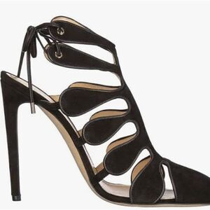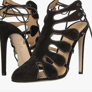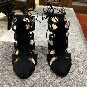 Chloe Gosselin calf hair, black suede closed toe heels with leather lace up, scalloped detail, excellent condition, no flaws, worn just a few times, no box or dust bag made in italy