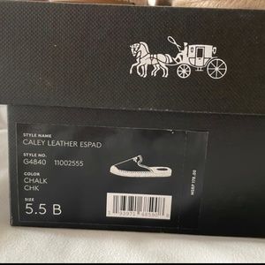 Brand new, never worn. Purchased last summer and just didn’t use them. Chalk/cream/ivory color with gold coach accents.