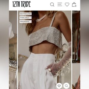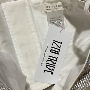 Brand new never worn with tags. Accidentally bought two tops, it is beautiful and full of rhinestones and fits smaller chests.