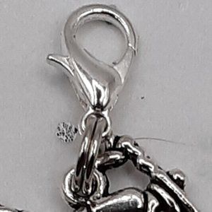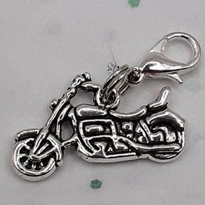 The motorcycle is approximately 1" including the double-jump ring and lobster clasp. The metal is Tibetan silver.