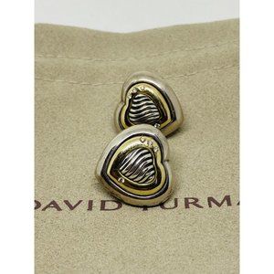 Beautiful David Yurman Sterling Silver, 18K Gold, and Diamond Heart Shaped Earrings. They are Pierced with a French Clip and 18K