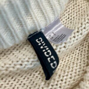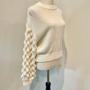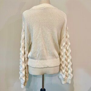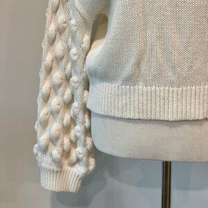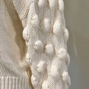 cream or white bobble sleeve jumper from the brand Divided, a sub-brand of H&M. It features a round neck, ribbed hem and cuffs, and textured bobble detailing on the sleeves.