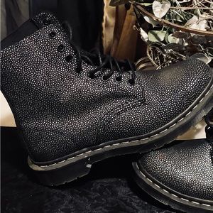 The Original Dr Marten black with silver dot accents. Black classic signature bouncing soles. Hard to find rare color pattern. Brand new, never worn. U.S. size 8.