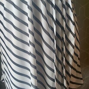 EXPRESS, stunning white semi sheer dress with black stripes, fully lined, one shoulder dress, elastic waist with tie belt, excellent condition, never worn, size xs