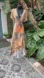 This elegant wrap dress features a vibrant leopard, print or animal print multicolor design, perfect for any occasion. The dress combines shades of orange, yellow, and cream, creating a stunning look.