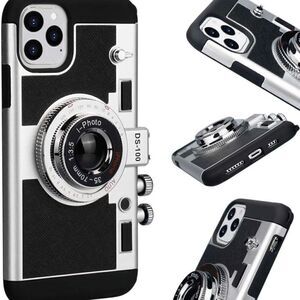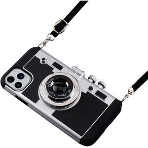 Emily in Paris Phone Case iPhone 11 Pro Max Camera Case Vintage Cover Cute 3D Cool Unique Camera Design Case PC Silicone Cover with Removable Neck Strap Lanyard for Girls Women Black