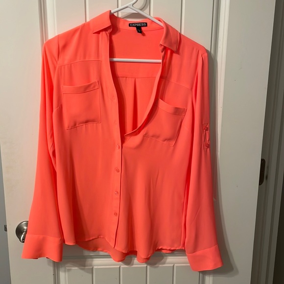 Express bright pink/orange button up dress shirt. Lightweight. Size XS. Never worn.