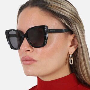 Classic shapes reimagined in new graphic interpretations of Burberry check. Highlighted with Burberry check details at the temple tip. An oversized frame accented with Burberry check details.