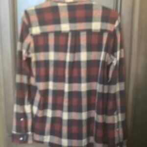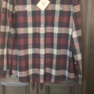 Color: Burchfield Plaid. This shirt has point collar, long sleeves, plaid print, button front closure with an extra button included, Sleeves have 2 button closure. Two chest pockets with button closure. Material: 65% polyester, 30% Viscose & 5% Elastane. Very soft material. Imported. Approx. length from shoulder to hem is 29.5''. NEW with tag on.