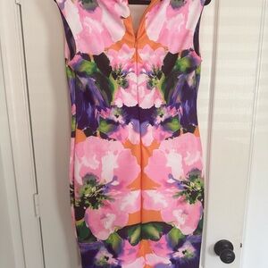 Vibrant orange dress with a stunning floral design. Perfect for any occasion.