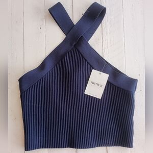 NWT halter neck navy blue cropped halter neck tank. Ribbed detailing makes this super flattering! Size small but also could fit a medium.