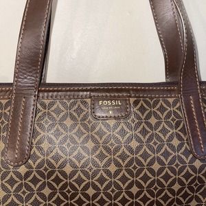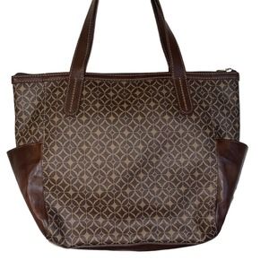 COPY - Fossil Mimi Shopper Tote Bag Purse Brown Vegan Leather Geometric Signatu…