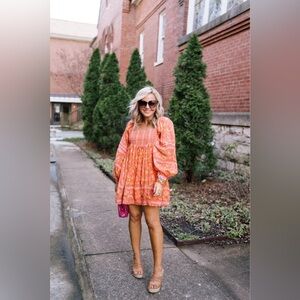 Printed to perfection in a timeless floral design, this so sweet mini dress is featured in a babydoll-inspired silhouette with puffed sleeves and contrast trim throughout for added dimension.