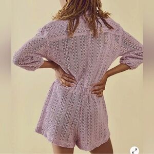 So soft in a sweater knit, this stunning romper from our free-est collection is featured in a relaxed, button-up silhouette with smocked waistband design and unlined fabrication for that effortless, beachy look.