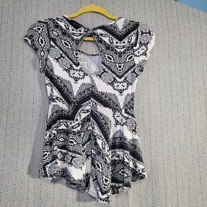 COPY - Gemstone Flowy Black And White Aztec Design Shirt Size Small