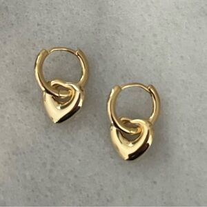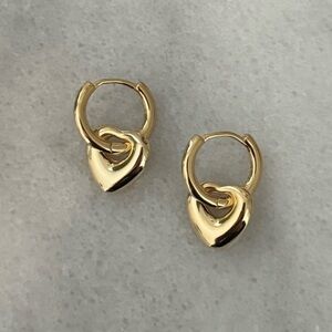 Gold Bubble Heart Charm Dangle Huggie Hoop Earrings