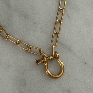 Gold Carabiner Clasp Charm Chain Link Necklace