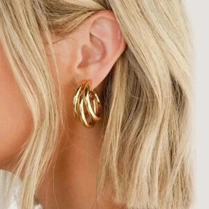 Brand New Boutique Item | Thick Gold Huggie Multi Hoop Earrings.