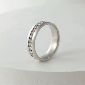 Black Silver Gold Rainbow Iridescent Stackable Stainless Steel Zircon Diamond Row Rings