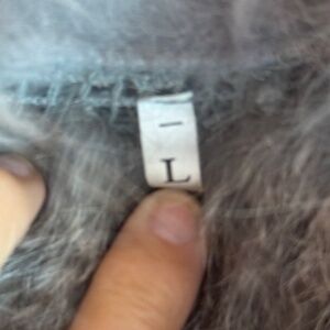 Pretty, fluffy, cozy rabbit fur gilet in grey. The large fits more like a medium.