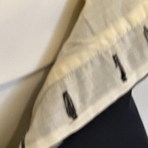 Beautifully made skirt that I only wore twice. It's a very expensive linen; I think this line is hand made.......You can google the designer and see other interesting pieces. Raw hem with the cotton interior showing at the front slit....I'm 5'6" and it hits around my knee. It fits at the waist; slim look with lined interior pockets as well as little pocket flaps on back. Belt loops for a very thin belt if wanted; but it did not come with one nor do I think it was meant to be belted.....but it might add a cool feel with a little white tshirt tucked....