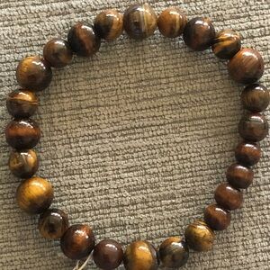 COPY - Handmade Tiger’s Eye & Wood Bead Stretch Bracelet w/ Gold Spacers – Unis…