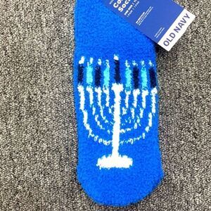 New. Hanukkah Menorah women’s cozy slipper socks. Blue crew socks with Menorah design. Gripper dots on bottom to prevent slipping. Bundle to get 25% off.