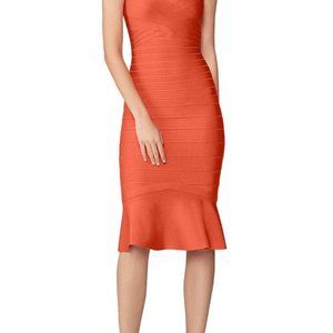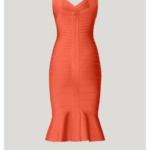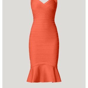 Beautiful Herve Leger Dress. Color is Coral Poppy. In perfect condition, Only worn once!
