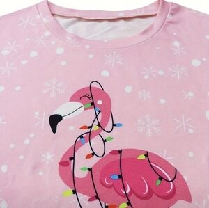 COPY - Holiday Lights Flamingo Print Long Sleeve Pullover Tee Sweater lightweig…